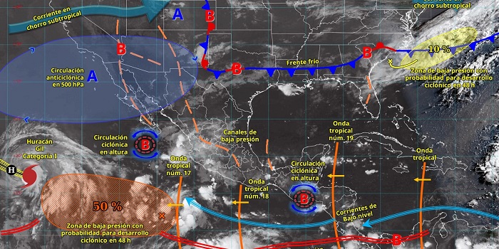 Para información del huracán Gil del océano Pacífico, consultar los avisos del Servicio Meteorológico Nacional en: