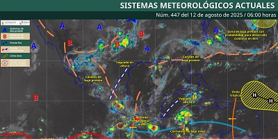 Oaxaca de Juárez, Oax. 12 de agosto de 2025.- La Coordinación Estatal de Protección Civil y Gestión de Riesgos (CEPCyGR) informa que la tarde de este martes se tendrá un aumento en la inestabilidad con abundante nubosidad en evolución y chubascos acompañados de tormentas eléctricas y rachas de viento con probables áreas de granizo.