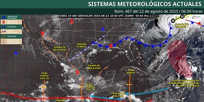 Oaxaca de Juárez, Oax. 22 de agosto de 2025.- La Coordinación Estatal de Protección Civil y Gestión de Riesgos (CEPCyGR) informa que continuará la presencia de lluvias de intensidad variable con periodos cortos de tormentas locales, algunas asociadas con actividad eléctrica y probables intervalos fuertes de viento al momento de la lluvia.