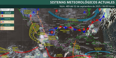 Oaxaca de Juárez, Oax. 2 de septiembre de 2025.- La Coordinación Estatal de Protección Civil y Gestión de Riesgos (CEPCyGR) informa que se prevén lluvias de intensidad variable y ocasionales tormentas por la tarde con mayor intensidad en zonas montañosas.