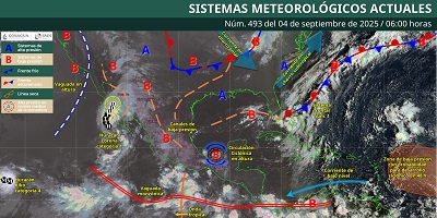 Oaxaca de Juárez, Oax. 4 de septiembre de 2025.- La Coordinación Estatal de Protección Civil y Gestión de Riesgos (CEPCyGR) informa que, continuará la presencia de lluvias ligeras a moderadas aisladas con tormentas localmente fuertes por la tarde-noche, en menor intensidad que en días anteriores.