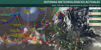 Oaxaca de Juárez, Oax. 10 de septiembre de 2025.- La Coordinación Estatal de Protección Civil y Gestión de Riesgos (CEPCyGR) informa que continuará el tiempo lluvioso en la mayor parte de Oaxaca; además de tormentas fuertes y algunas localmente intensas en la Sierra Sur, Costa, Istmo de Tehuantepec y Mixteca.