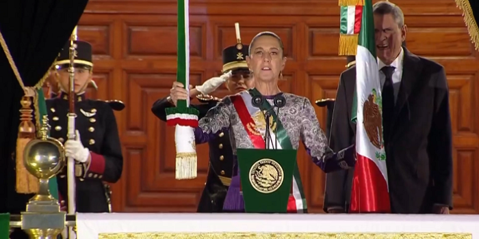 Siguieron los chiflidos, los gritos relajientos y el Himno Nacional. La cámara enfocó el cuadro de una heroína de la Independencia y, luego, la espigada figura de la presidenta Claudia Sheinbaum acompañada de su esposo, el mazatleco Jesús María Tarriba.