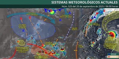 Oaxaca de Juárez, Oax. 20 de septiembre de 2025.- La Coordinación Estatal de Protección Civil y Gestión de Riesgos (CEPCyGR) informa que continuarán las lluvias fuertes con tormentas localmente intensas en la Costa, Istmo de Tehuantepec, Sierra Sur y algunos sectores de la Mixteca; asociadas con actividad eléctrica y rachas de viento a su paso.