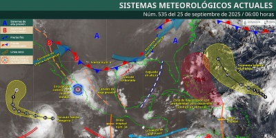 Oaxaca de Juárez, Oax. 25 de septiembre de 2025.- La Coordinación Estatal de Protección Civil y Gestión de Riesgos (CEPCyGR) informa que continuarán las lluvias con tormentas localmente fuertes, algunas asociadas con actividad eléctrica durante la tarde y con mayor énfasis en zonas montañosas; donde se desarrollarán bancos de niebla densos, nubes bajas y lloviznas intermitentes.