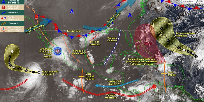 Para más información del huracán Narda en el océano Pacífico, consulta el aviso del Servicio Meteorológico Nacional en: