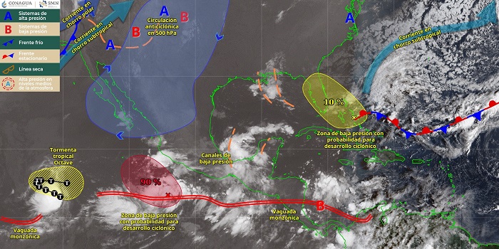 Para más información del ciclón tropical Octave en el océano Pacífico, consulta el aviso del Servicio Meteorológico Nacional en: https://smn.conagua.gob.mx/es/pronosticos/avisos/aviso-de-ciclon-tropical-en-el-oceano-pacifico
