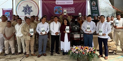 Oaxaca de Juárez, Oax. 9 de octubre de 2025.- En un hecho sin precedentes, el Gobierno del Estado presentó el primer Modelo Productivo Penitenciario de México “OaxaCAFÉ”, con lo que inicia su elaboración y comercialización por parte Personas Privadas de su Libertad (PPL) del Centro Penitenciario de Santa Catarina Juquila.