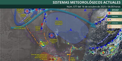 Además, aumentará la inestabilidad atmosférica sobre Chiapas, Guerrero y Oaxaca, favoreciendo aporte de humedad y habrá nieblas muy densas que pueden reducir la visibilidad horizontal en zonas serranas de la entidad.