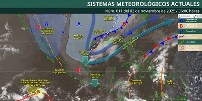 Por otro lado, se prevé que soplen vientos del norte, los cuales se irán incrementando hasta alcanzar velocidades fuertes de 70 a 80 kilómetros por hora al atardecer, especialmente en el oriente del Istmo de Tehuantepec. Además de oleaje elevado en aguas del Golfo de Tehuantepec.