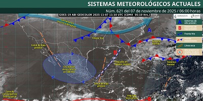 Por otro lado, se mantiene en vigilancia un nuevo frente frío que se desplazará rápidamente a lo largo de la vertiente del Golfo de México, durante el sábado y domingo.
