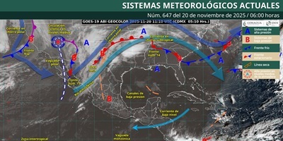 Asimismo, la dependencia mantiene vigilancia sobre un frente frío que se estará aproximando hacia el noroeste de México durante el sábado, impulsado por una vaguada polar.