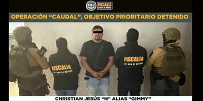 Christian Jesús “N”, alias “Jimmy” o “Gimy”, quien se desempeña como sexto regidor en el municipio de Chalco, fue detenido en las primeras horas de este viernes, como parte de las acciones operativas de la segunda etapa de la “Operación Caudal”, cuyo fin es neutralizar objetivos prioritarios, incluidos líderes de organizaciones delictivas con fachada de sindicato y servidores públicos, y desarticular la cadena de extracción, distribución y venta ilícitas de agua en la entidad.