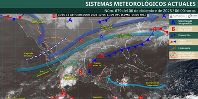 Por otro lado, el frente frío número 18 se mantiene casi estacionario sobre el oriente de México, donde es muy probable que permanezca en espera de recibir nuevas aportaciones de aire frío que podrían impulsarlo hacia el sureste a principios de la próxima semana.