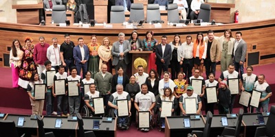 La entrega de esta distinción contó con la presencia de la presidenta de la Mesa Directiva, Eva Diego Cruz; de la diputada Cecilia Olivia Cruz Merlín; de las y los integrantes de la Junta de Coordinación Política (Jucopo), Dante Montaño Montero, Antonia Natividad Díaz Jiménez y Melina Hernández Sosa.