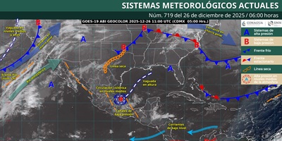 Oaxaca de Juárez, Oax. 26 de diciembre de 2025.- La Coordinación Estatal de Protección Civil y Gestión de Riesgos (CEPCyGR) informa que se prevé ambiente frío en zonas altas de la entidad durante el amanecer y por la noche; mientras que en áreas de costa y llanuras el ambiente será fresco.