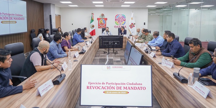 Oaxaca de Juárez, Oax. 25 de enero de 2026.- La Mesa Operativa de Seguimiento Electoral (MOSE) se instaló en sesión permanente, con el objetivo de que la jornada de Revocación de Mandato se desarrolle en un ambiente de paz, orden y respeto; informó el titular de la Secretaría de Gobierno (Sego), Jesús Romero López.