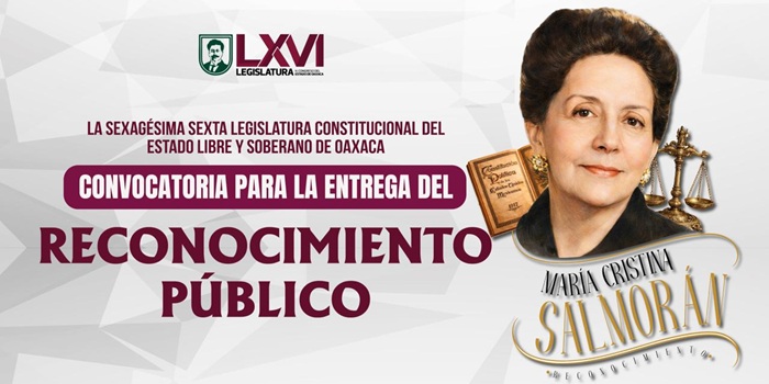 Congreso de Oaxaca invita a participar por el Reconocimiento Público “María Cristina Salmorán” 2026