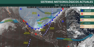 Soplará viento del norte con rachas que pueden alcanzar hasta los 80 km/h en el oriente del Istmo. Oaxaca de Juárez, Oax. 5 de abril de 2026.- La Coordinación Estatal de Protección Civil y Gestión de Riesgos (CEPCyGR) informa que el frente frío número 43 avanzará sobre el litoral del Golfo de México, provocando lluvias y tormentas en diferentes puntos del estado, algunas asociadas con actividad eléctrica y posible caída de granizo, principalmente en horas vespertinas. De acuerdo con el pronóstico del tiempo emitido por la Comisión Nacional del Agua…