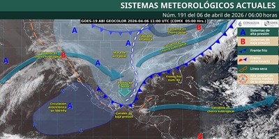 Oaxaca de Juárez, Oax., 6 de abril de 2026.- La Coordinación Estatal de Protección Civil y Gestión de Riesgos (CEPCyGR) informa que el frente frío número 43 avanzará sobre el litoral del Golfo de México y continuará ocasionando lluvias y tormentas en diferentes puntos del estado, algunas puntualmente fuertes en la mitad norte, asociadas con actividad eléctrica y posible caída de granizo, principalmente durante la tarde y noche.