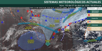 • Se presentarán rachas ventosas de 60 a 80 kilómetros por hora en el oriente del Istmo de Tehuantepec y oleaje elevado en aguas del Golfo de Tehuantepec. Oaxaca de Juárez, Oax. 7 de abril de 2026.- La Coordinación Estatal de Protección Civil y Gestión de Riesgos (CEPCyGR) informa que, durante la tarde de este martes, se prevé el desarrollo de nubes con potencial de tormentas, así como lluvias aisladas en diferentes puntos del estado, algunas localmente fuertes en zonas montañosas. Estas condiciones son ocasionadas por el frente frío número…