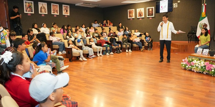 En esta oportunidad, las y los asistentes conocieron el libro “El abuelo ya no duerme en el armario”, de Silvia Molina. Oaxaca de Juárez, Oax. 7 de abril de 2026.- Como parte del programa “Fomento a la Lectura, Un pueblo leyendo para transformar su historia”, el Gobernador Salomón Jara Cruz compartió la narración de libros con estudiantes de nivel preescolar, primaria y secundaria de diferentes municipios de Valles Centrales. Durante este espacio en el salón Libertadores Latinoamericanos en Palacio de Gobierno, el Mandatario estatal destacó que esta estrategia tiene como objetivo…
