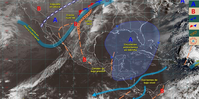 El Servicio Meteorológico Nacional monitorea los efectos del frente núm. 44, una línea seca y una vaguada en altura sobre el norte de México, durante los próximos dos días.