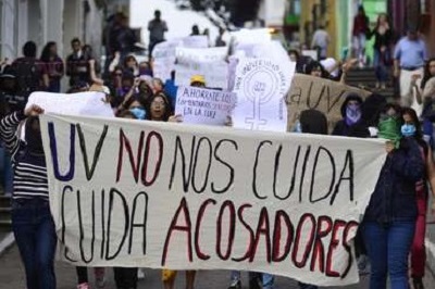 -Piden que se investigue a académicos. -Interrumpen acto de la rectora y ella las apoya. Eirinet Gómez|Corresponsal|Foto Sergio Hernández Vega|Periódico La Jornada|Miércoles 20 de noviembre de 2019, p. 28|Xalapa, Ver., Estudiantes de la Universidad Veracruzana (UV) irrumpieron en un acto oficial que encabezaba la rectora de esa casa de estudios, Sara Ladrón de Guevara, para denunciar acoso sexual de académicos hacia estudiantes y exigir a las autoridades que investiguen y que estos casos no queden impunes. Hace una semana se dio a conocer un caso de acoso sexual en la…