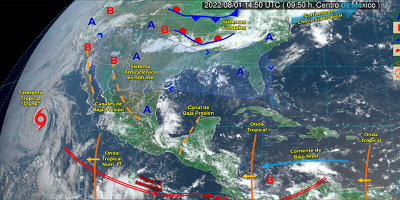 Se mantiene vigilancia de una onda tropical con convección dispersa sobre Panamá, que se desplaza hacia el oeste, con posible ingreso en las próximas 48 horas sobre el sureste de México. Oaxaca de Juárez, Oax. 1 de agosto de 2022. Para este lunes, continuarán las condiciones de lluvias aguaceros en la mayor parte del estado, informó la Coordinación Estatal de Protección Civil de Oaxaca (CEPCO). Algunas de estas tormentas serán vespertinas, las cuales se dispararán con el calor de la tarde, podrían traer fuertes rachas de viento y actividad eléctrica en cortos…