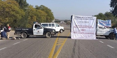 Bloquean carretera en Magdalena Ocotlán; exigen cancelación de proyecto minero