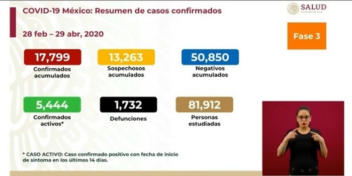 Contabiliza Ssa 17 mil 799 casos acumulados de Covid-19
