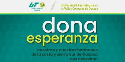 Unirse en solidaridad con quienes más lo necesitan es muestra de la calidad humana de la comunidad universitaria: Saúl del Toro Zapién. San Pablo Huixtepec, Oax., 1 de octubre de 2024.- La Universidad Tecnológica de los Valles Centrales de Oaxaca (UTVCO) anunció que del 2 al 4 de octubre, abrirá dos centros de acopio para recibir víveres en apoyo a las personas damnificadas por el paso del huracán “John” en el estado, principalmente, a las pertenecientes a las regiones de la Sierra Sur y Costa. El rector de la Universidad,…