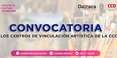Las instancias que resulten seleccionadas tendrán disponibles clases a distancia de hasta cuatro talleres en las disciplinas de artes plásticas, danza, música y alternativos. Oaxaca de Juárez, Oax. 17 de marzo de 2021. Con el propósito de ampliar el ejercicio de los derechos culturales en los diferentes sectores sociales, así como desarrollar habilidades a través de talleres artísticos entre la población infantil, juvenil y adulta, la Casa de la Cultura Oaxaqueña (CCO) emite la convocatoria para quienes deseen ser beneficiarios de 14 sitios de enseñanza virtual denominados Centros de Vinculación…