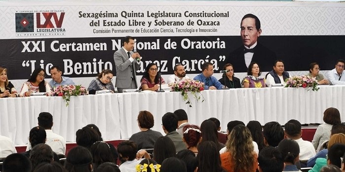 • La 65 Legislatura local comenzó con los preparativos de la edición 21 del Certamen Nacional de Oratoria “Licenciado Benito Juárez García”. San Raymundo Jalpan, Oaxaca. 08 de febrero de 2023.- En sesión ordinaria, el Pleno de la 65 Legislatura local aprobó con 33 votos a favor la convocatoria para la edición No. 21 del Certamen Nacional de Oratoria “Licenciado Benito Juárez García”, dirigida a niñas, niños y jóvenes. El concurso se realizará en dos etapas: la primera será a nivel estatal y se llevará a cabo el día 16…