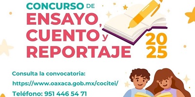 · Podrán participar estudiantes de primaria, secundaria y media superior, de instituciones públicas y privadas del estado. Oaxaca de Juárez, Oax. 12 de mayo de 2025.- A fin de impulsar habilidades en escritura, reflexión y comunicación, el Consejo Oaxaqueño de Ciencia, Tecnología e Innovación (Cocitei) invita a niñas, niños y adolescentes de los 570 municipios de Oaxaca a participar en el Concurso de Ensayo, Cuento y Reportaje 2025. A través de textos originales, la niñez y juventud oaxaqueña tendrán la oportunidad de expresar su imaginación, creatividad y pensamiento crítico; lo que ayudará…