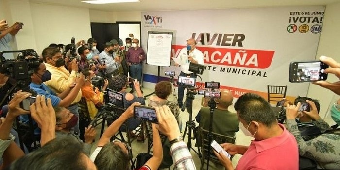 Oaxaca, Oax., 4 de mayo de 2021.- En su segundo día de actividades de campaña, Javier Villacaña Jiménez, candidato de la coalición “Va por Oaxaca” a la presidencia municipal, presentó ante medios de comunicación los “compromisos con la sociedad”, propuestas que serán una realidad para impulsar el rescate de la capital oaxaqueña. En un breve encuentro efectuado en la casa de campaña, Villacaña Jiménez explicó que estos 15 compromisos forman parte de los más de 70 que se han construido como resultado de más de 39 años de trabajo en las…