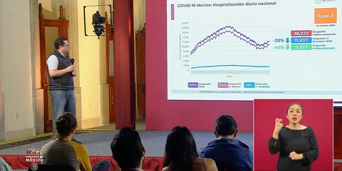 Laura Poy Solano | sábado, 24 oct 2020 19:46 |Ciudad de México. El director general de Epidemiología de la Secretaría de Salud, José Luis Alomía, indicó que a 147 días del inicio de la nueva normalidad, los casos de Covid-19 suman 886 mil 800, con 6 mil 25 nuevos casos confirmados en las últimas 24 horas. Tras recordar a la población que deben mantener las medidas de prevención, y en particular en las entidades donde se incrementó el nivel de riesgo, de acuerdo con la actualización más reciente del semáforo epidemiológico,…