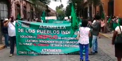 Exigen reubicación STAFF NVI|Lun, 07/27/2020 – 11:29. Familias y habitantes de Lomas de Quio, Xoxocotlán se movilizaron con pancartas hacia Avenida Juárez para manifestarse frente a la Casa Oficial de Gobierno de la Ciudad de Oaxaca. Los pobladores protestaron ante el desalojo que sufrieron en las faldas del cerro de Monte Albán en la comunidad de Santa Cruz Xoxocotlán, por lo que exigieron al gobernador de Oaxaca, Alejandro Murat la reubicación en los terrenos que les habían prometido. Entre las pancartas se podían apreciar demandas de las cuales destacaban “La…