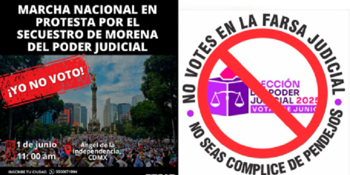 – «¡No votes por la farsa!» – A pocos días de que se realice la elección judicial, personajes como Lorenzo Córdova, Vicente Fox y Paty Chapoy emprendieron una campaña en redes sociales para llamar a la población a que no participe en dicho ejercicio democrático. Por Redacción| Ciudad de México, 17 de mayo 2025 – 1:41 am (SinEmbargo).– A 15 días de la elección judicial, el bloque opositor está convocando en redes sociales a no acudir a votar por los juzgadores, a la par de que exconsejeros del Instituto Nacional…