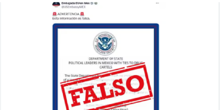 Leer másEmbajada de EU en México desmiente lista de políticos mexicanos ligados al narco; «es información falsa»