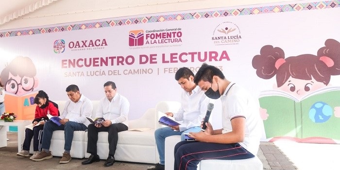 Santa Lucía del Camino, Oax. 28 de febrero de 2023.- El Gobernador de Oaxaca Salomón Jara Cruz refrendó su compromiso de garantizar el interés superior de los niños, niñas y adolescentes como parte de sus ejes estratégicos, mediante el fomento y el impulso a la lectura. En este sentido, el Mandatario estatal asistió a un Encuentro de Lectura en el municipio de Santa Lucía del Camino, donde compartió este momento de aprendizaje y magia, con niñas y niños de siete instituciones de educación básica. En la lectura del libro «Ladrón…