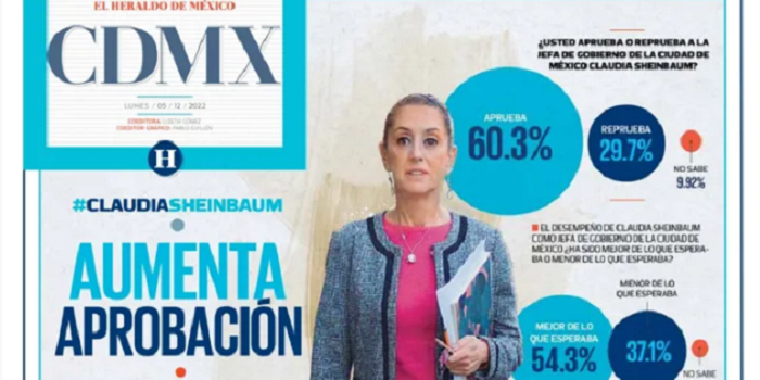 👉🏻1461 días al frente de la Jefatura de Gobierno. 👉🏻Bajaron los 54% delitos de alto impacto. Redacción, 5 de diciembre 2022. De los residentes de la Ciudad de México, 60 por ciento aprueba a la jefa de Gobierno, Claudia Sheinbaum; mientras que, 29.78 por ciento la reprueba y 9.92 por ciento no sabe. Lo anterior, de acuerdo con el más reciente estudio de opinión de Poligrama–Heraldo de México, que tiene un nivel de confianza de 95 por ciento y, por ende, un margen de error de 4.38 por ciento. A…
