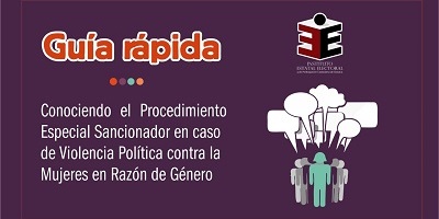 Crea Guía para conocer el Procedimiento Especial Sancionador en Casos de Violencia Política contra las Mujeres En el marco del 25 de noviembre Día Internacional para la Erradicación de la Violencia contra las Mujeres y Niñas, el Instituto Estatal Electoral y de Participación Ciudadana de Oaxaca (IEEPCO) pone al alcance de la ciudadanía la Guía rápida Conociendo el Procedimiento Especial Sancionador en casos de Violencia Política contra las Mujeres en Razón de Género (VPMRG). La lucha por la erradicación de la violencia contra las mujeres en el ámbito político es fundamental…