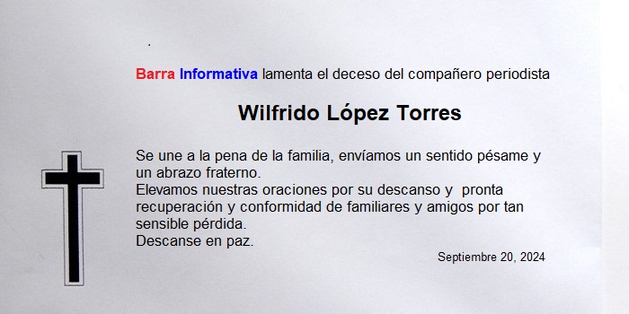 Barra Informativa envía su más sentido pésame a la familia por su irreparable pérdida. Descanse en paz.