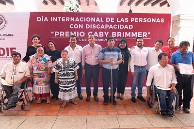En el Día Internacional de Personas con Discapacidad, entregan galardones en las categorías de arte, ciencia, deportes, superación personal y cultura. Oaxaca de Juárez, Oaxaca, a 3 de diciembre del 2019.- Para reconocer las aportaciones enfocadas a promover la ciencia, arte, cultura, deporte y superación personal de personas con discapacidad, el Ayuntamiento de Oaxaca de Juárez, a iniciativa del DIF Municipal y a través del Consejo Consultivo Temático de Personas con Discapacidad, hizo entrega del Premio “Gaby Brimmer” 2019. En el marco del Día Internacional de Personas con Discapacidad, con la…