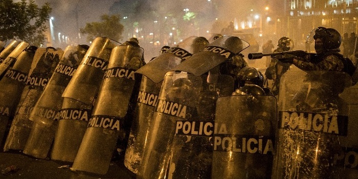 Reuters | Foto Ap|La Jornada| viernes, 13 nov 2020 16:04 |Lima. Violentos choques entre la policía y manifestantes por la destitución del presidente Martín Vizcarra, dejaron al menos 27 heridos, algunos con balas de goma y otros con armas de fuego, dijeron el viernes varias fuentes. Miles de personas marcharon en la noche del jueves por el centro de Lima, en una de las manifestaciones más grandes de las últimas dos décadas, en rechazo al nombramiento del presidente interino Manuel Merino, que reemplazó a Vizcarra a cinco meses de las…
