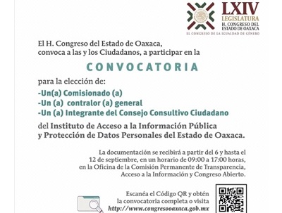 Leer másLlama Congreso a ciudadanía para ocupar cargos en el IAIPO