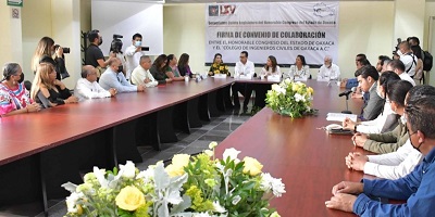*El Congreso de Oaxaca firmó un convenio de colaboración con el Colegio de Ingenieros Civiles de Oaxaca A.C. San Raymundo Jalpan, Oax. 29 de septiembre de 2022.- Con el objetivo de trabajar en iniciativas de ley en materia del cuidado del agua, integrantes del Congreso local firmaron un convenio de colaboración con el Colegio de Ingenieros Civiles de Oaxaca A.C. Actualmente en el estado hay problemas de escasez y contaminación del vital líquido, por lo que con este acuerdo, el Parlamento local podrá solicitar opiniones técnicas y de investigación para generar…