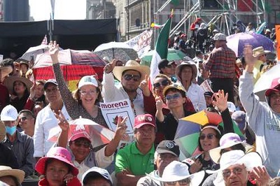 López Obrador reconoce que falta mejorar la salud, crecer la economía y combatir la violencia. 02/07/2019 06:14 ARTURO PÁRAMO|Excélsior|CIUDAD DE MÉXICO. Ante miles de asistentes en el Zócalo, donde festejó el primer aniversario de su victoria electoral, el presidente Andrés Manuel López Obrador dijo que el cambio de régimen no tiene retorno, debe acelerarse, acentuarse y consolidarse. “Este proceso no tiene retorno, ni un paso atrás, nada de titubeos o medias tintas. “Pienso que este mismo año, a más tardar en diciembre, terminaremos de arrancar de raíz al régimen corrupto y…