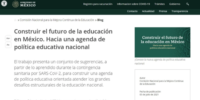 07:19 Laura Poy Solano |Foto tomada del sitio www.gob.mx/mejoredu/es| Ciudad de México. A fin de recuperar las lecciones aprendidas durante la pandemia e impulsar una transformación hacia un Sistema Educativo Nacional (SEN) “más justo y equitativo”, la Comisión Nacional para la Mejora Continua de la Educación (Mejoredu) lanzó 10 propuestas para una nueva agenda de política educativa nacional, que entre otros ejes propone la reorganización del SEN, adecuación de regulaciones y procesos educativos y el fortalecimiento de las iniciativas, autonomía y coordinación de las comunidades escolares. En el documento “Construir…
